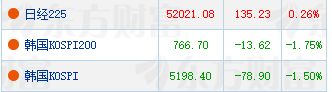 股市方面,日经225指数翻红,此前一度跌超2%,韩国KOSPI指数跌幅收窄至1.5%,此前一度跌超4%。