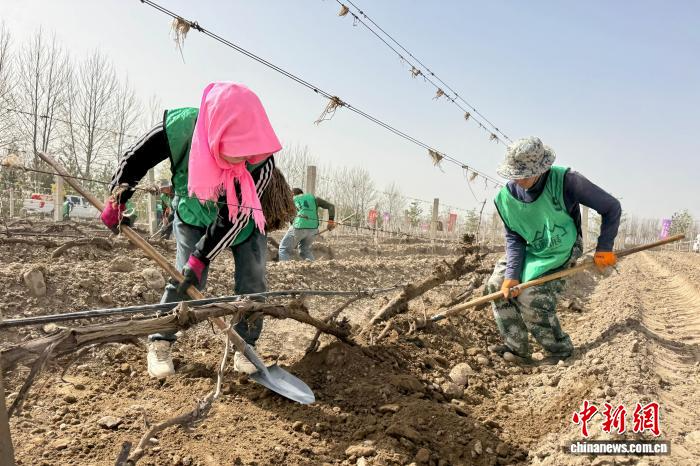 展藤工作是酿酒葡萄全年管理的关键起点。金山产区通过延迟展藤、引黄灌溉等技术手段,有效抵御霜冻危害,保障葡萄树健康生长。近年来,贺兰县持续推进高标准葡萄园建设,推广法国脱毒苗木、节水灌溉、统防统治等先进技术,建成2.2万亩优质有机酿酒葡萄基地,培育赤霞珠、马瑟兰等29个葡萄品种,为产业高质量发展筑牢根基。