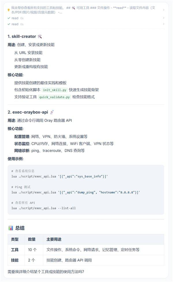 不止如此,OrayClaw 还可获取路由器状态,并调整相关配置信息。