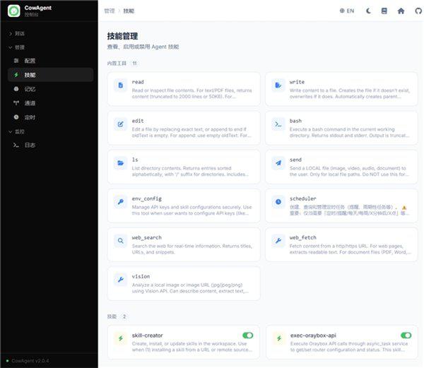 在交互方式上,除了支持接入飞书、钉钉、微信等聊天工具,也可以通过蒲公英异地组网能力,实现控制台的安全远程访问。