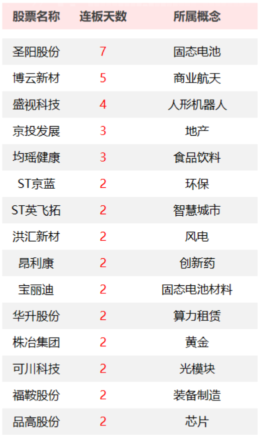 连板股统计丨A股市场共计77只个股涨停,固态电池板块圣阳股份收获7连板